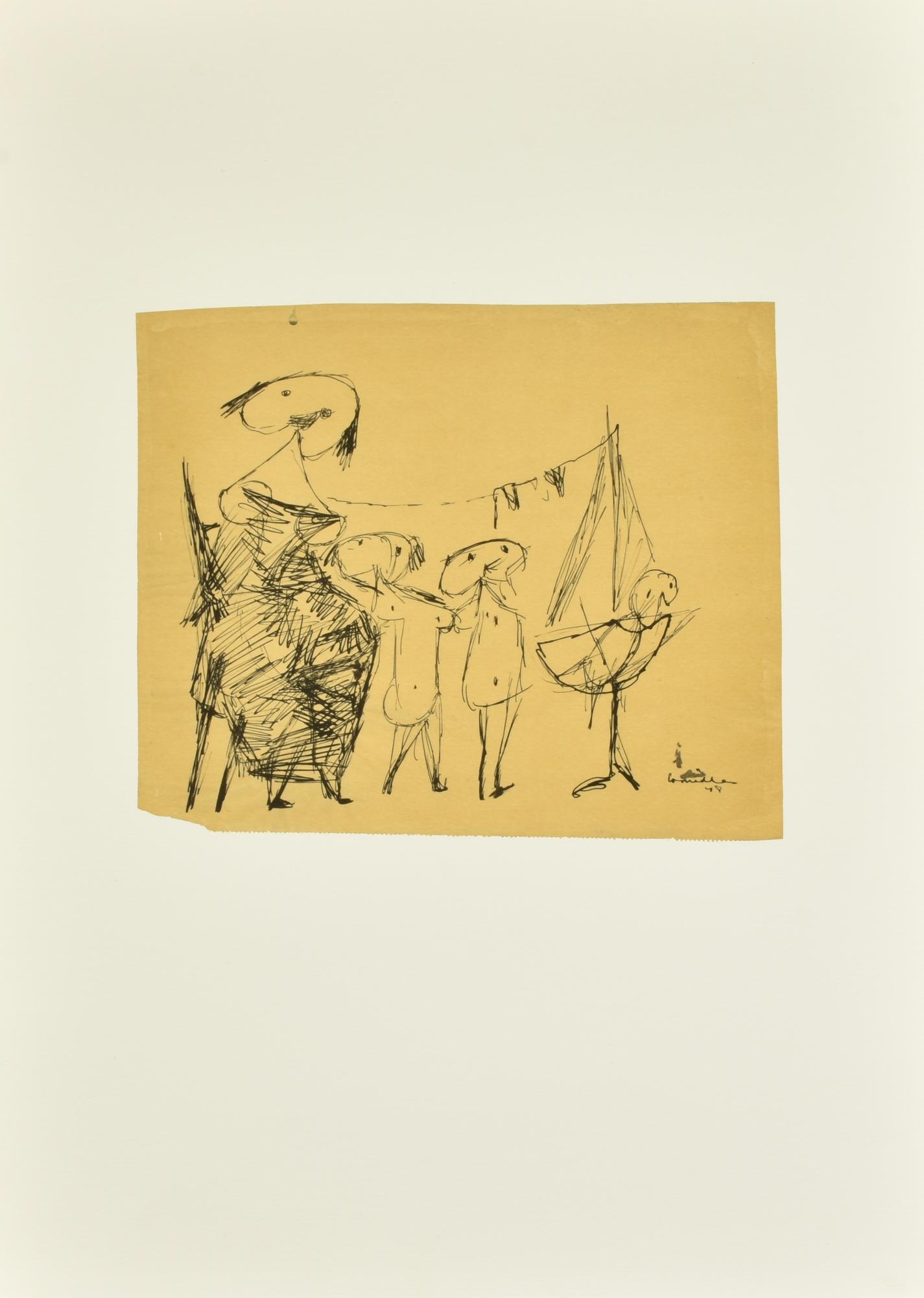 Corneille MADRE E BAMBINI litografia su carta (d'apres), cm 52x37 firma e...