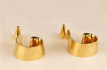Coppia di press papier in metallo dorato a foggia di punto interrogativo, cm....