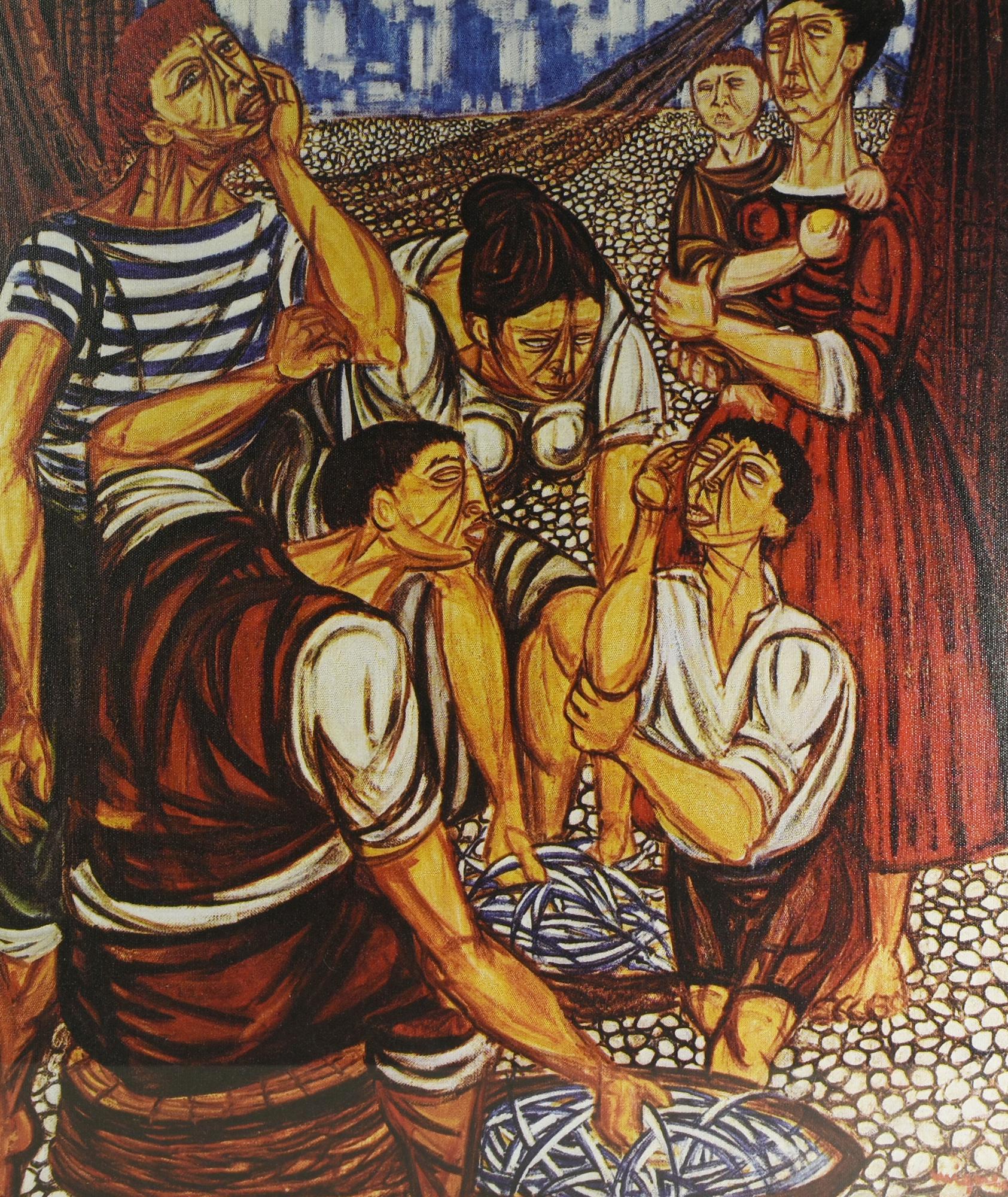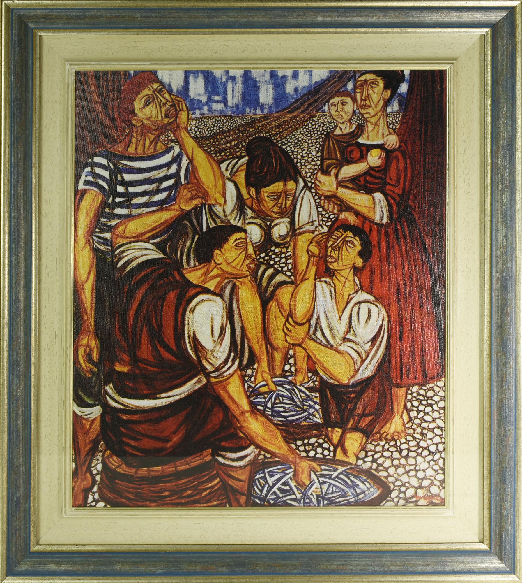 Giuseppe Migneco MERCATO DEL PESCE stampa su tela, cm 60x50 firma in lastra