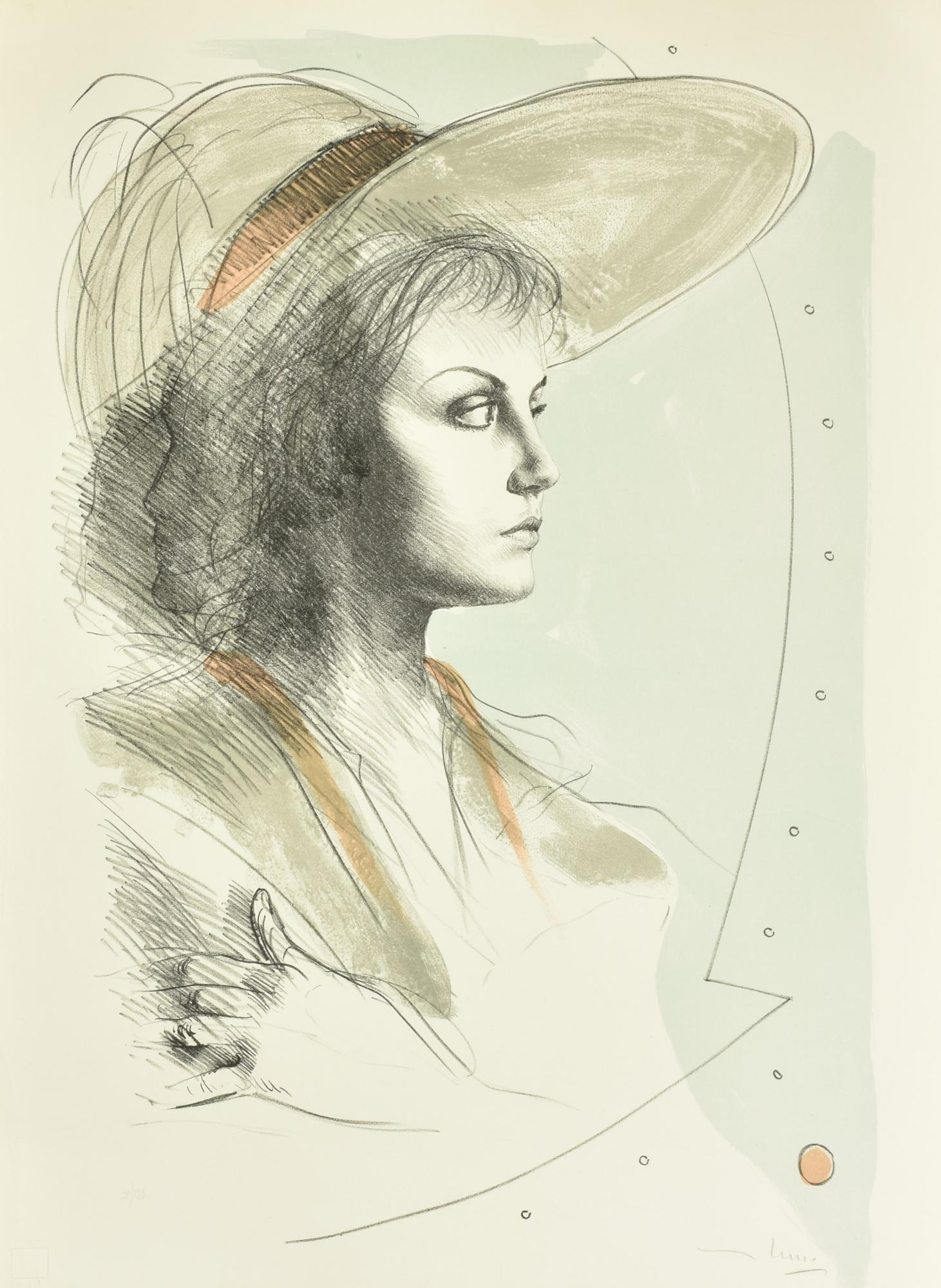 Ignoto DONNA CON CAPPELLO serigrafia su carta, cm 70x50; es. 30/125 firma...