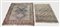 DUE TAPPETI CAUCASICI - TWO CAUCASIAN RUGS di vecchia manifattura, uno fondo rosa salmone, campo con tre medaglioni nei toni del blu, verde e beige ed uno con disegni geometrici nei toni del beige e del blu cm 147x125 e cm 123x89