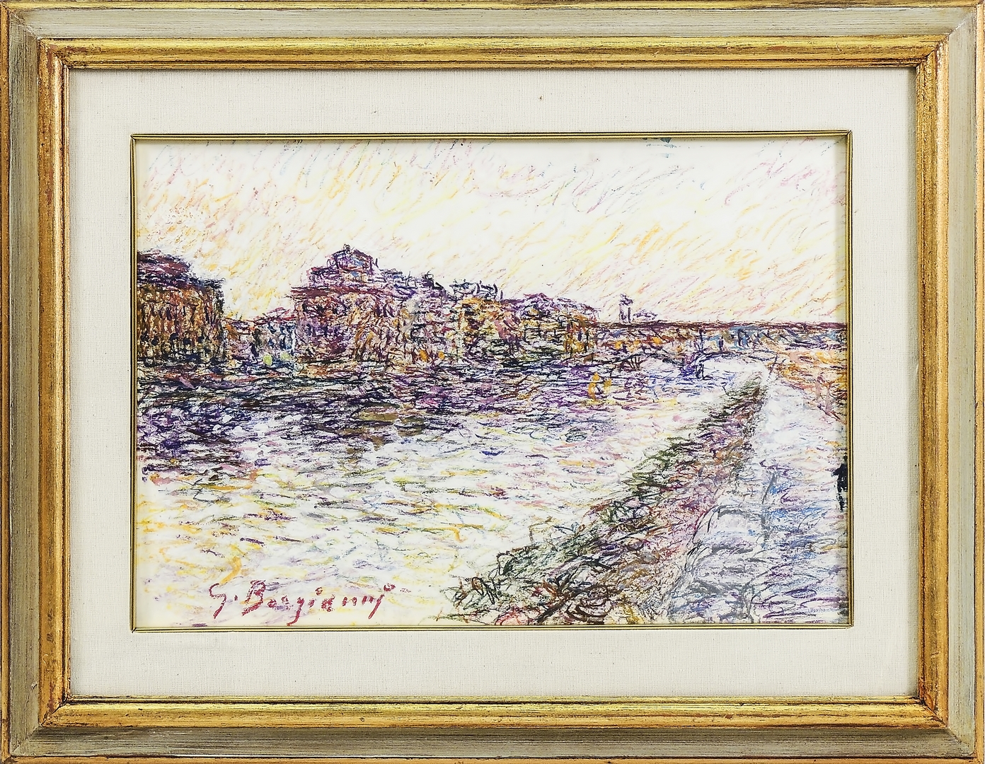 GUIDO BORGIANNI (1915-2011) Veduta di Ponte Vecchio - Florence View pastello su carta - pastel on paper, firmato, in cornice cm 33x47,5