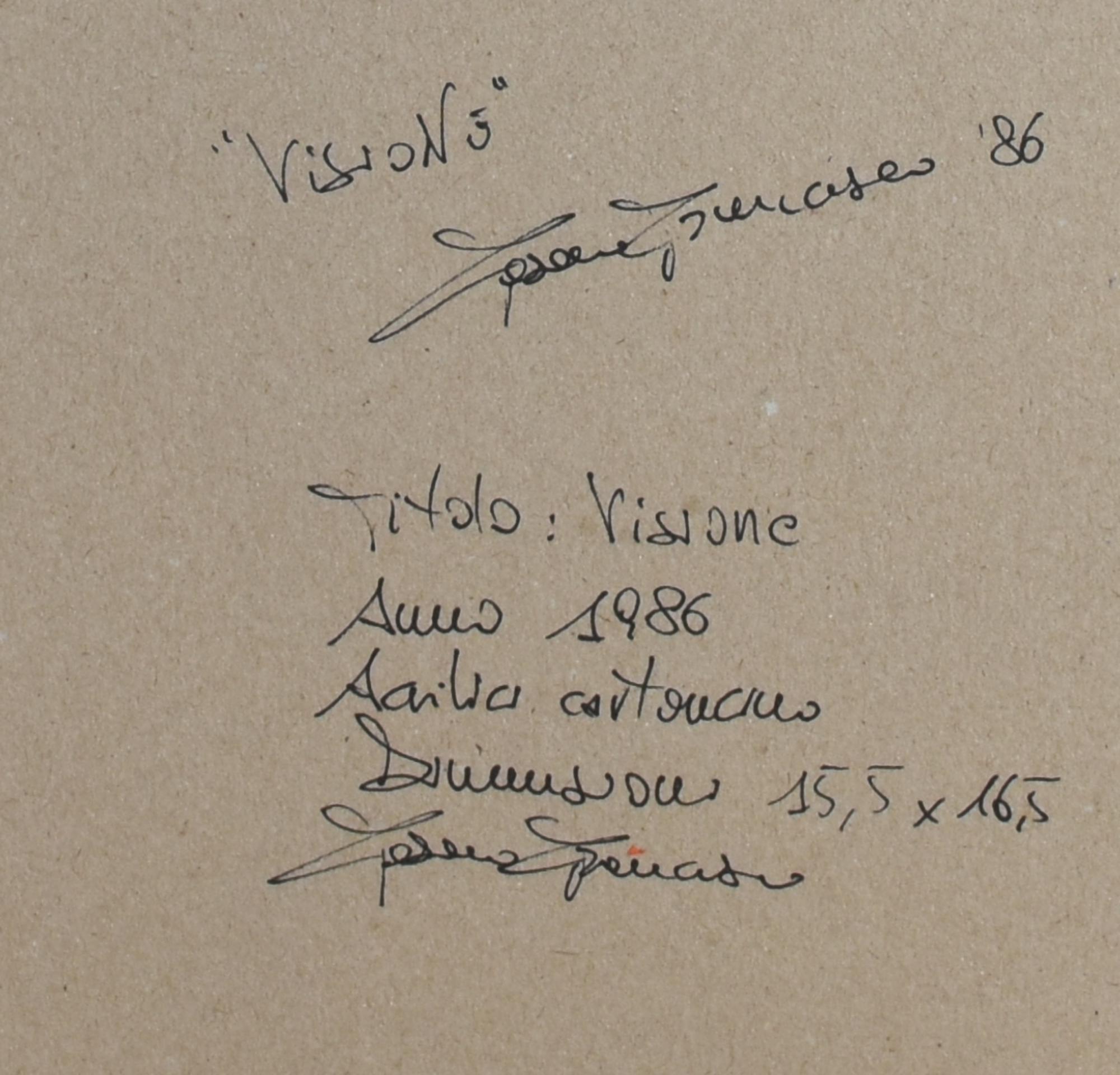 Francesco Fasano VISIONE acrilico su cartoncino, cm 16,5x15,5 sul retro:...