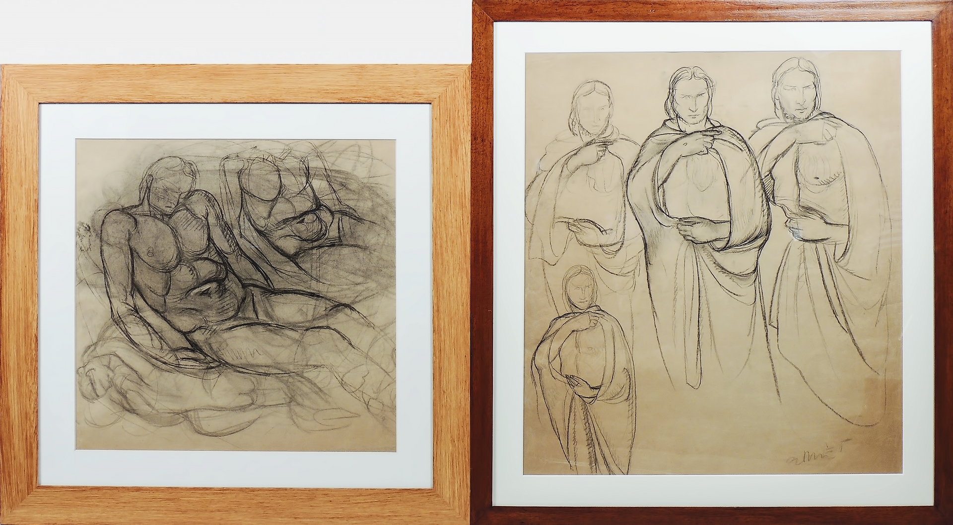 BACCIO MARIA BACCI (1890-1982) Studi di figure - Study for Figures due bozzetti a carboncino su carta - two charcoal sketches on paper, uno siglato, in cornice (2) cm 47x47 e cm 63x56 Provenienza: Galleria Michelucci, Firenze