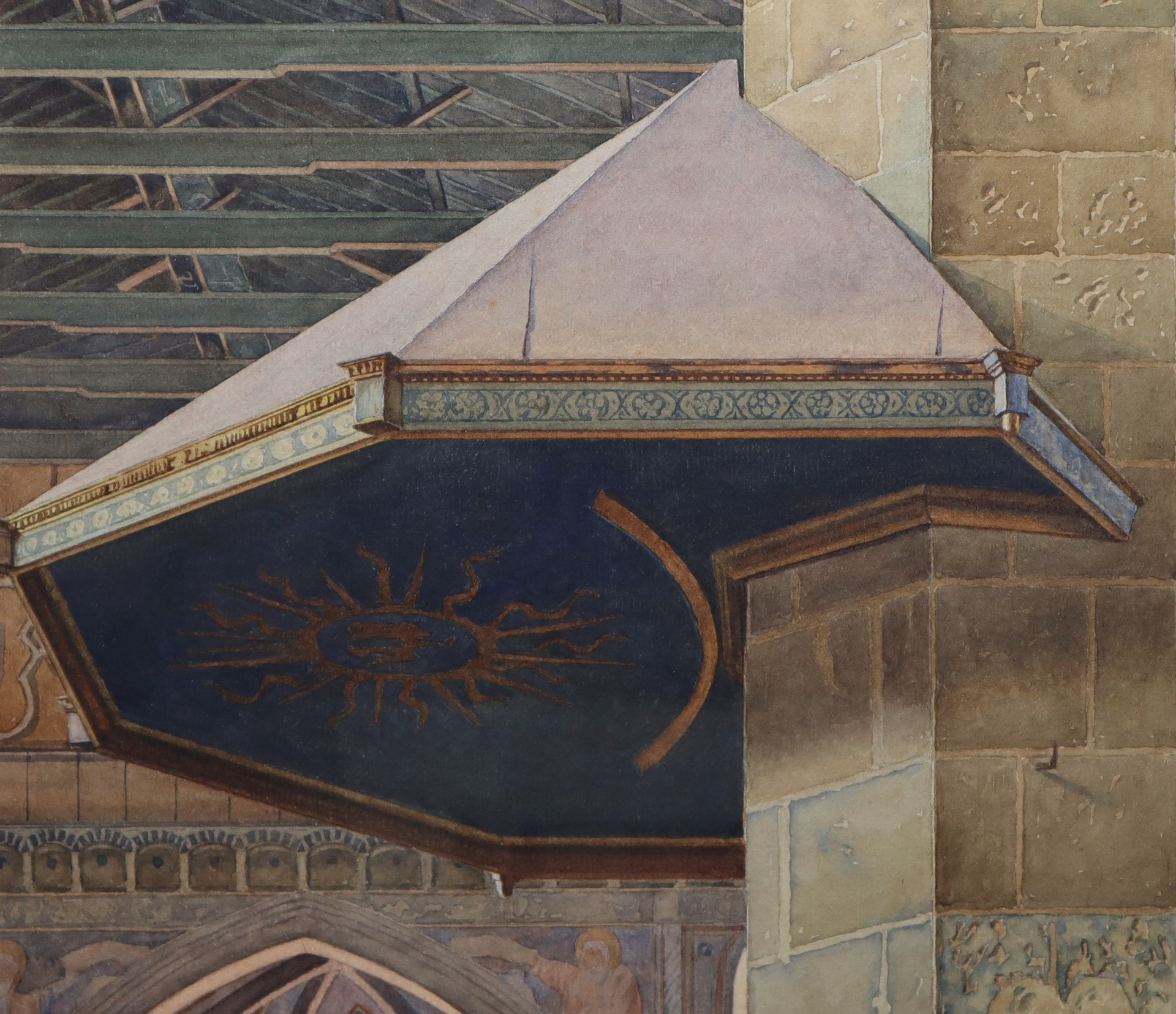Odoardo Borrani (Pisa 1833-Firenze 1905) - Interno di chiesa, 1881 Cm 36,5 x 96, in cornice 105 x 55 Acquerello su carta