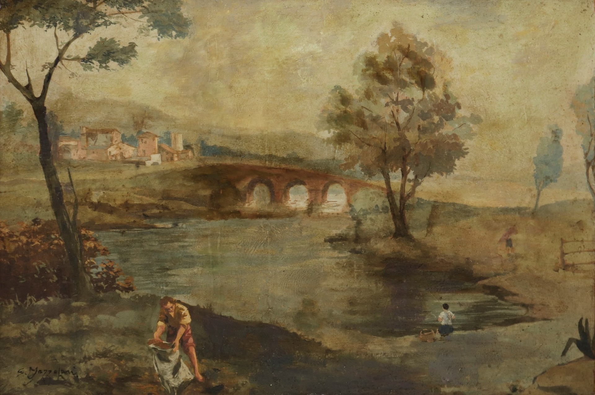 Giuseppe Mazzolani (1842-1916) - Paesaggio con figure