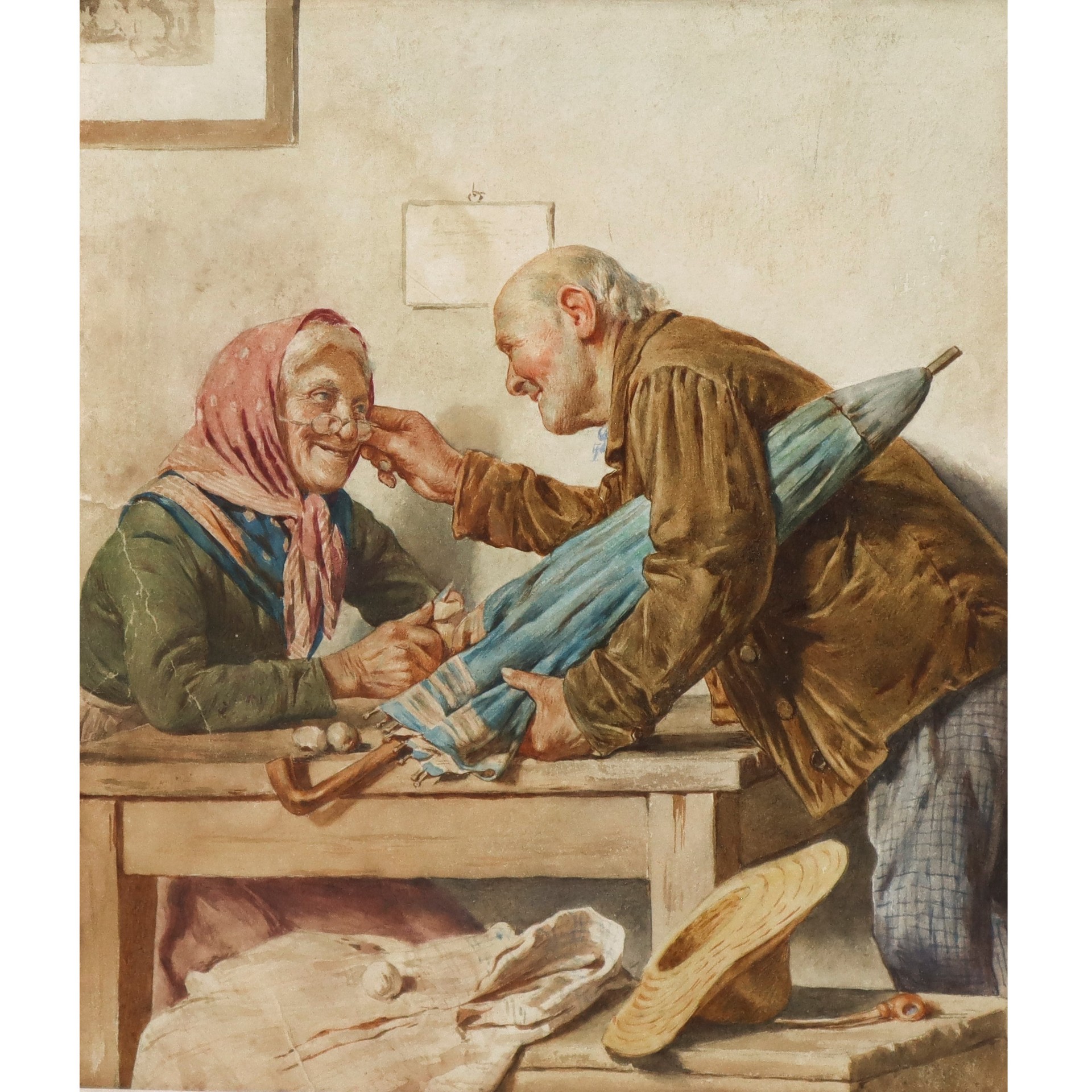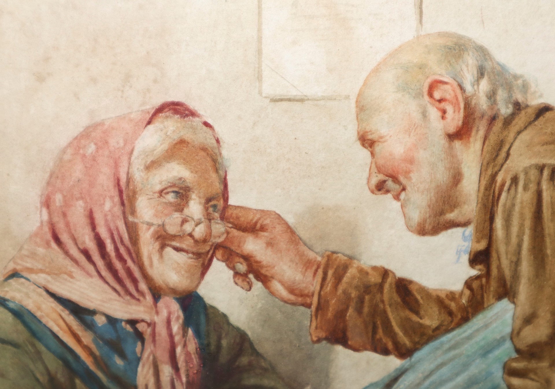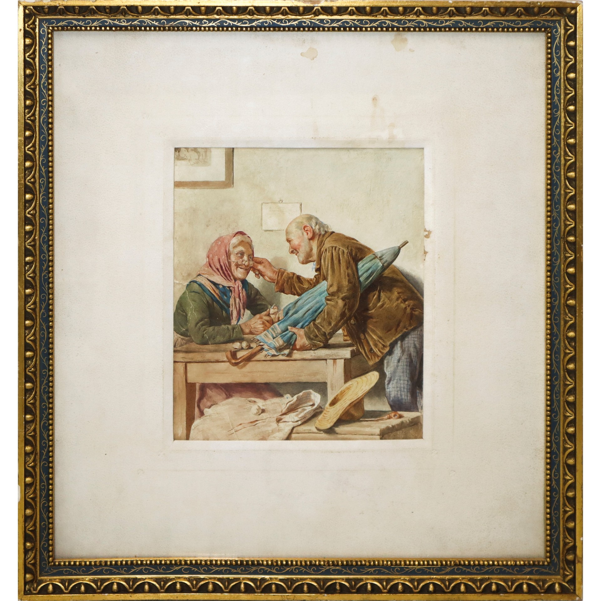 Eugenio Zampighi (attribuito a) (1859-Maranello 1944) - Scena familiare di anziani Cm 24(h) x 20, in cornice 47(h) x 43