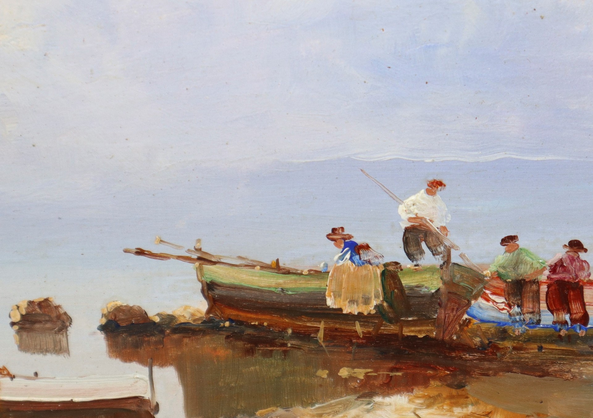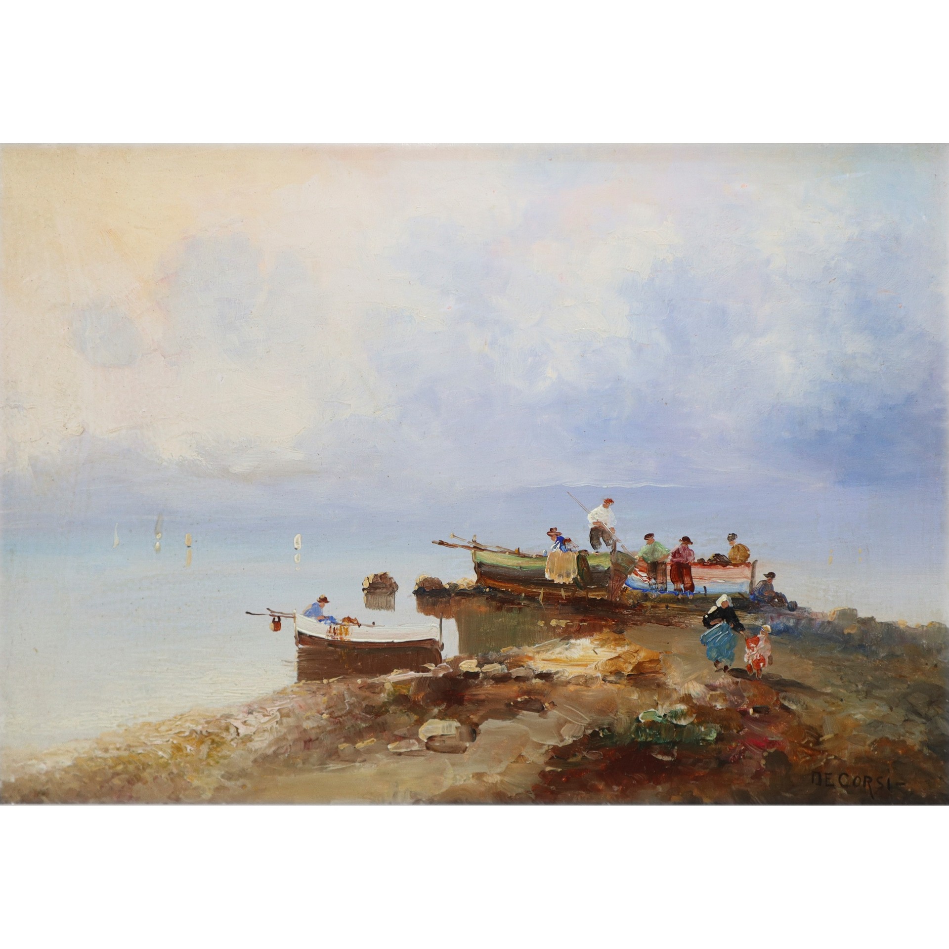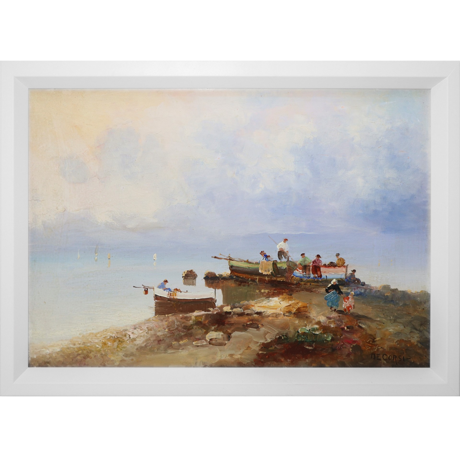 Nicolas De Corsi (Odessa 1882-Torre del Greco 1956) - Marina con barche cm 23x33 in cornice cm 27x37 Olio su compensato Firmatoin basso a destra