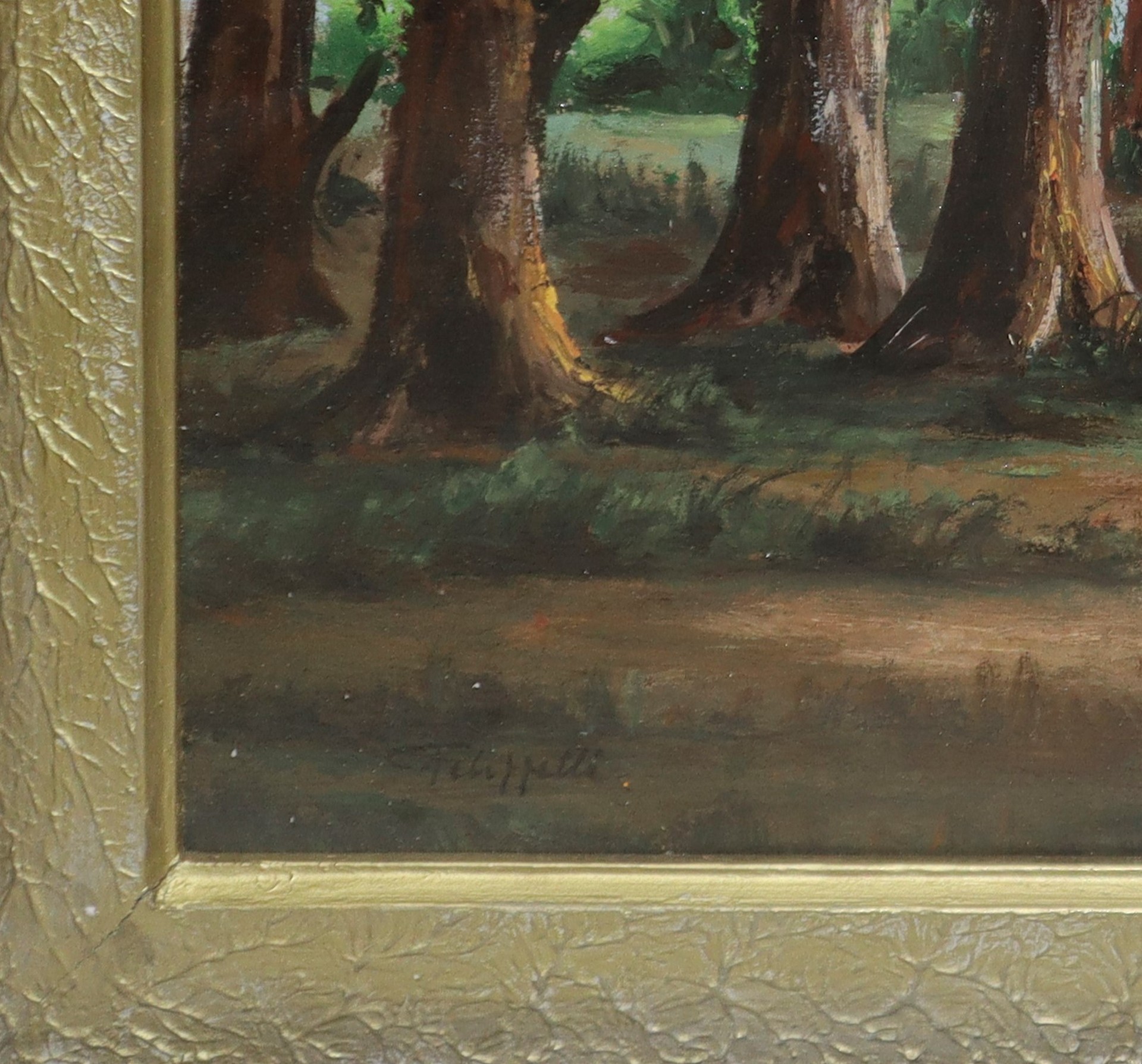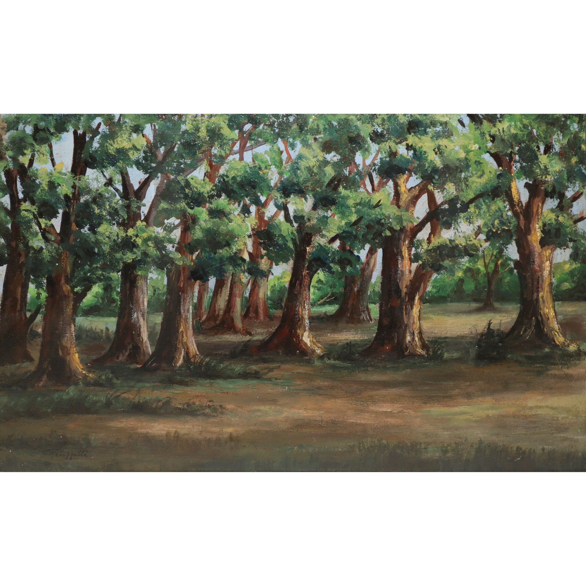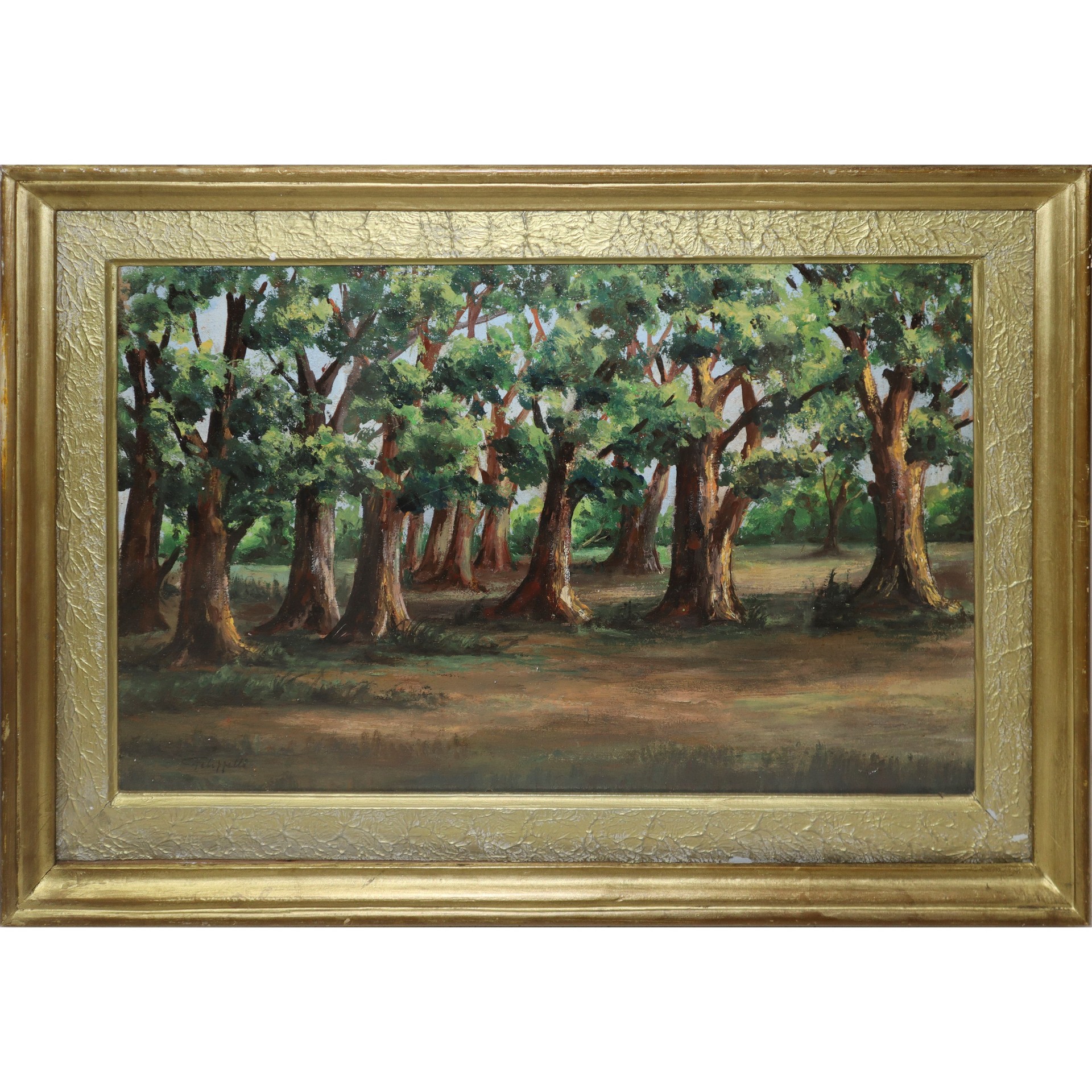 Cafiero Filippelli (Livorno 04/12/1889-1973) - Bosco H cm 35,5x53,5 - in cornice H cm 49x67,3 Olio su cartone Firma in basso a sinistra. In bella cornice dorata.