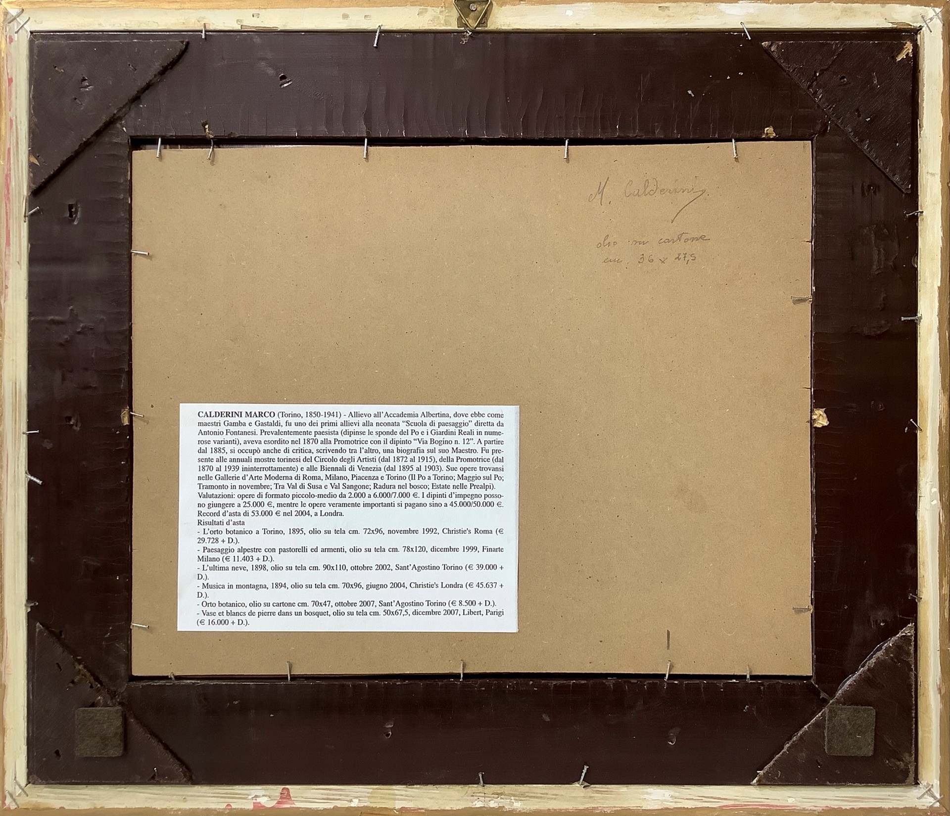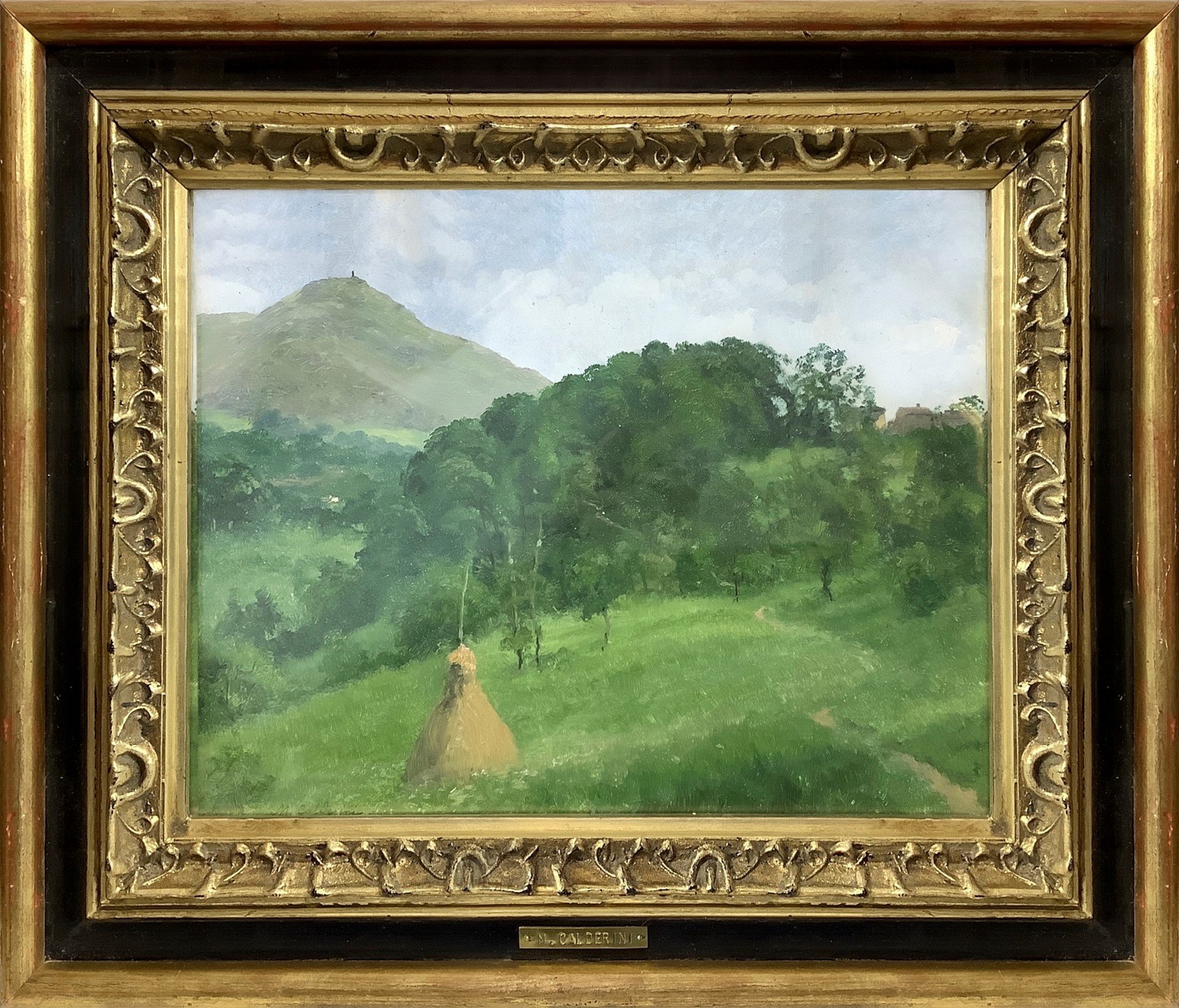 Marco Calderini (Torino 1850-Torino 1941) - Collina torinese, 19th/20° secolo 27,5x36 cm, in cornice 43x50 cm Dipinto a olio su cartone Firmato in basso a sinistra Calderini.