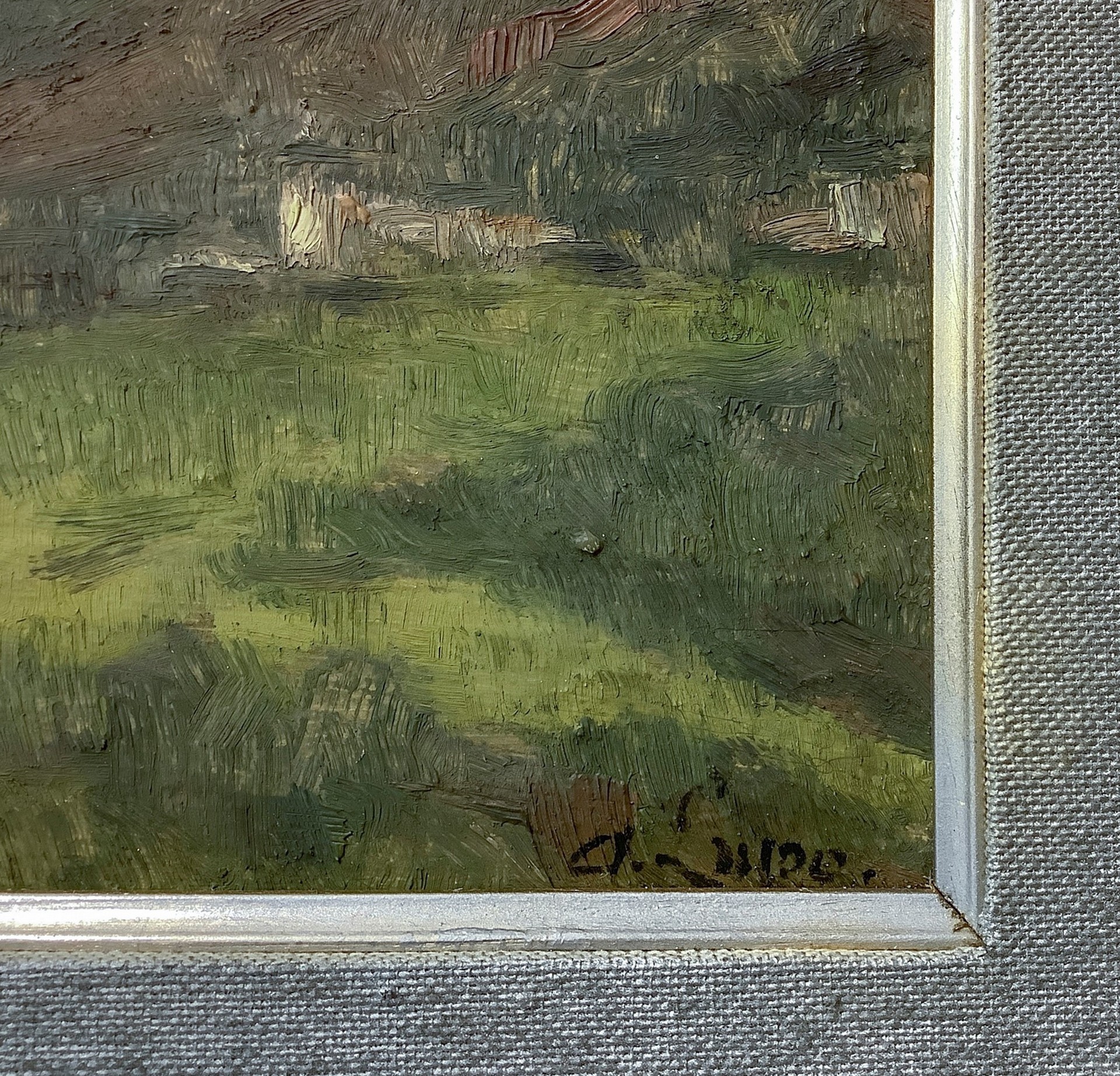 Alessandro Lupo (1876-Torino 1953) - Paesaggio montano 19,5x25 cm, in cornice 33x39 cm Dipinto a olio su cartoncino