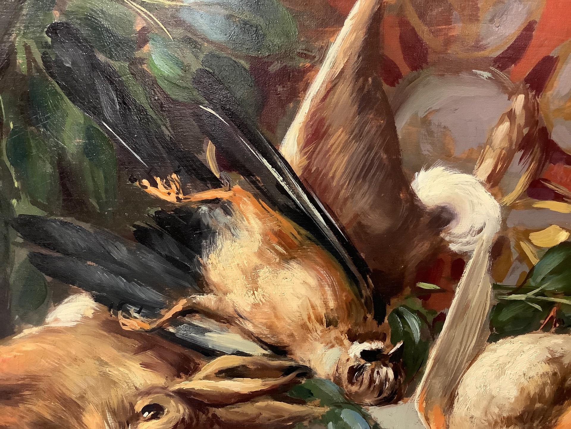 Giuseppe Alberto Cocco (Chieti 1879-Napoli 1963) - Natura morta di selvaggina 51x69 cm, in cornice 74x93 cm Dipinto a olio su tavola Firmato in basso a destra G.A.Coco.
