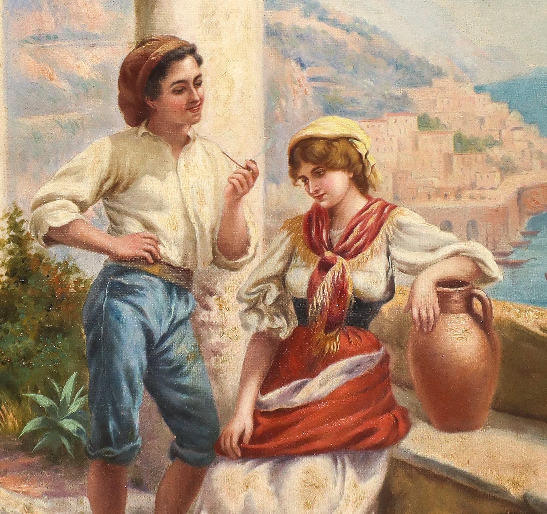 O. Pasetti - Scena di amanti in costiera amalfitana cm 82x50 Olio su tela Dipinto privo di cornice