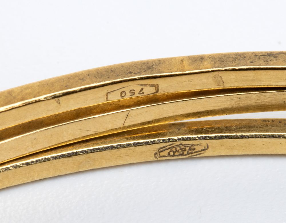 Punzonati "750 - 91 NA". Diametro interno 7 cm. Peso totale 139 gr.
