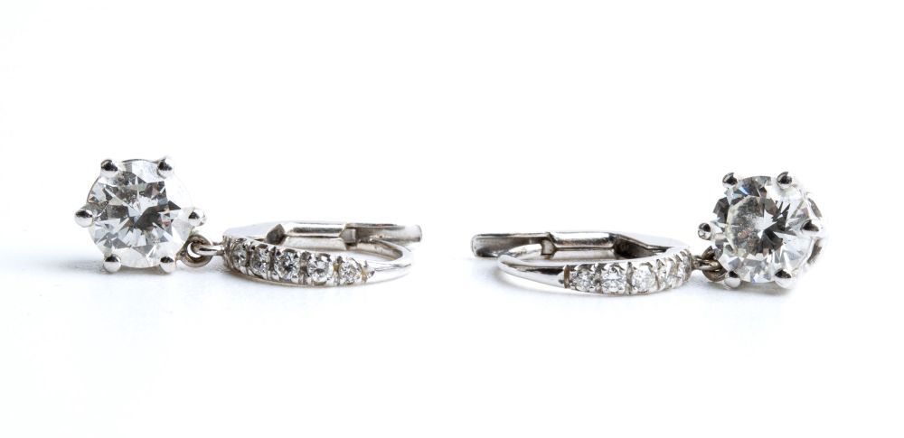 N. 02 diamanti di forma rotonda, taglio brillante, circa 1.50 ct totali; G-H; SI.