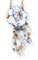 in oro giallo 18k, con pendente a forma di fiore smaltato, con diamanti e perline pendenti, che può essere indossato come spilla.