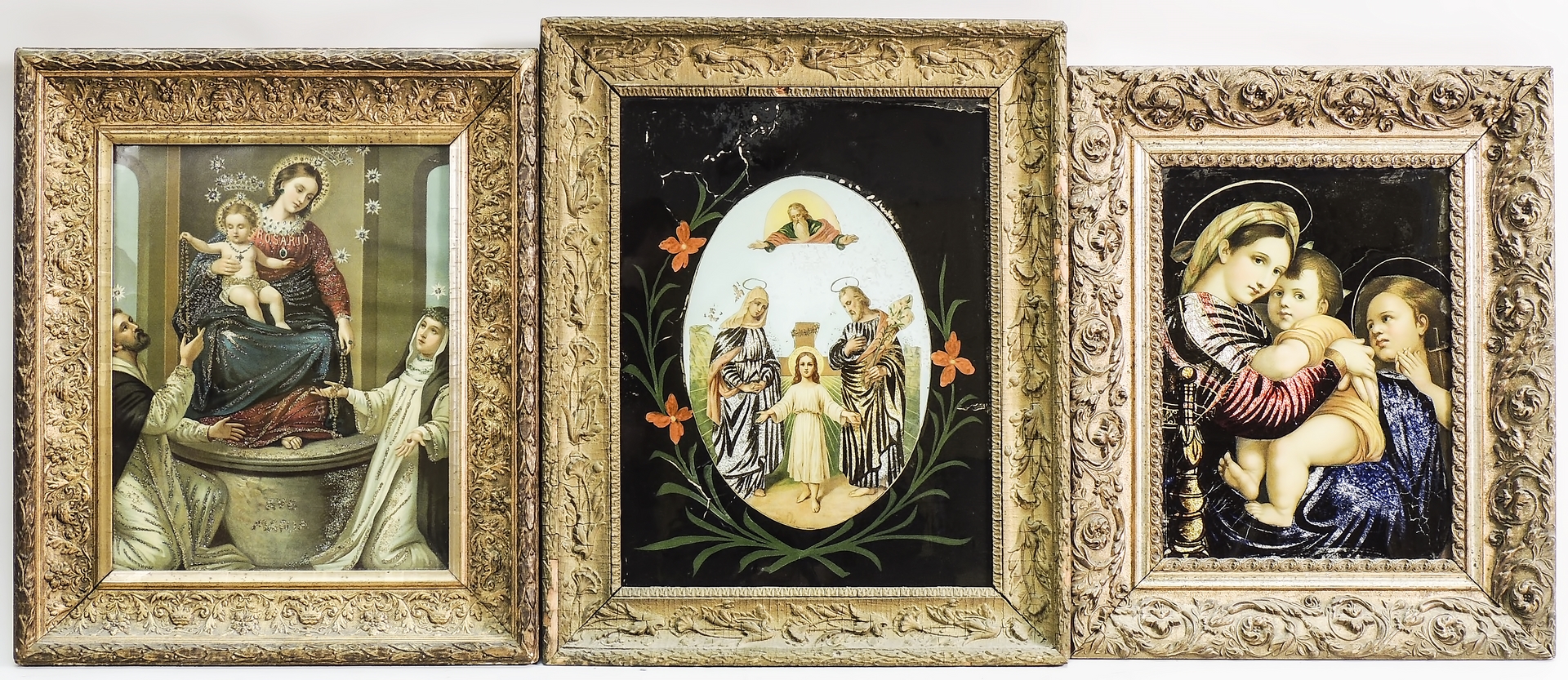 TRE IMMAGINI DEVOZIONALI - THREE DEVOTIONAL IMAGES in cornice, varie misure