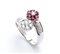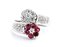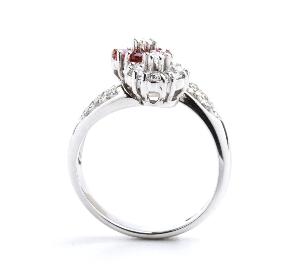 oro bianco 18k, motivo contrariè con motivi a fiore in rubini e diamanti.