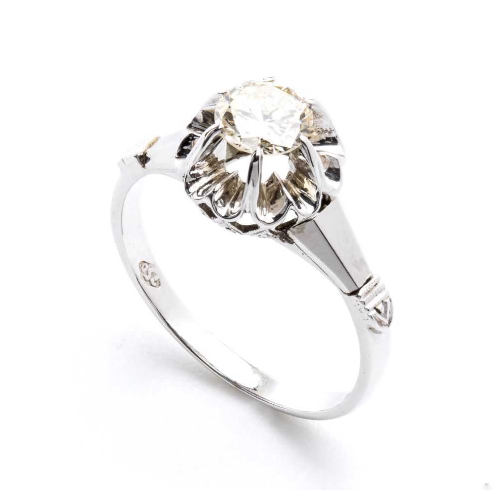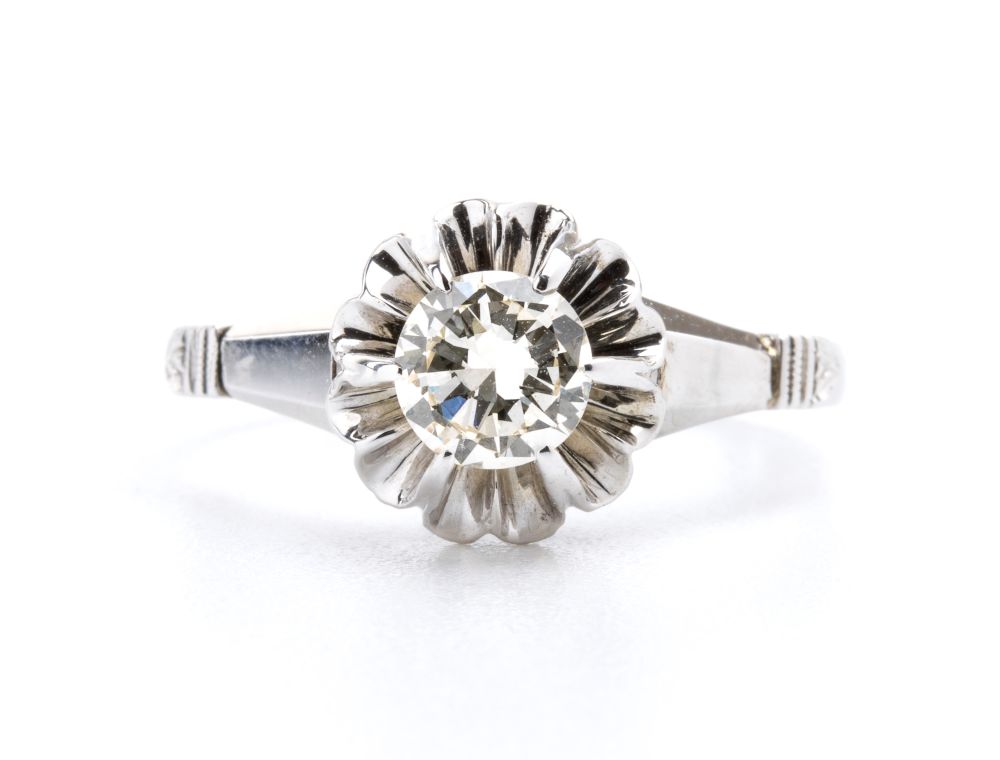 N. 01 diamante di forma rotonda, taglio brillante, circa 0.45 ct; I-J; VS.