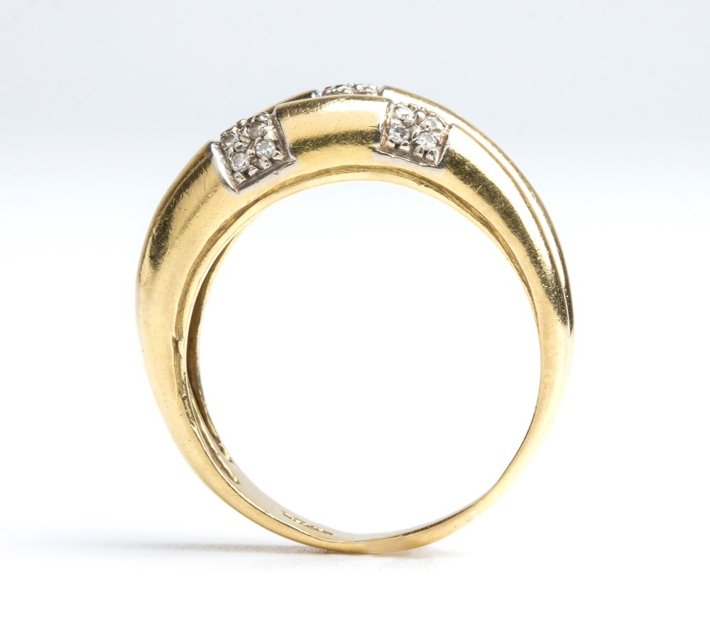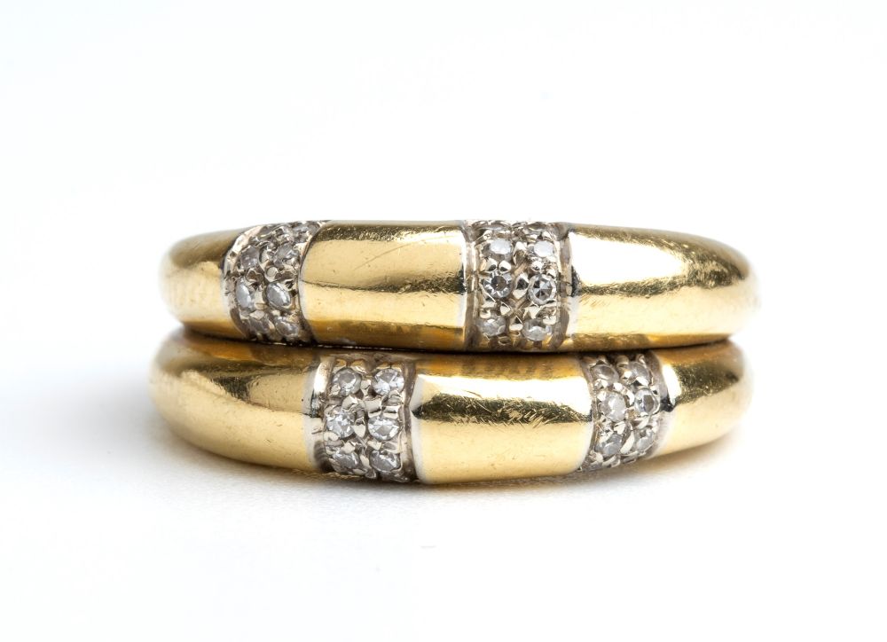 in oro giallo 18k, motivo a doppia fascia con quattro piccoli pavé di diamanti.