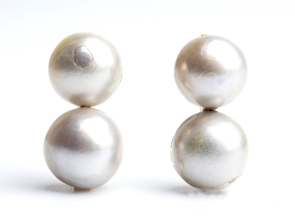in oro giallo 18k, clip con perno, ciascuno con coppie di perle Mabè.