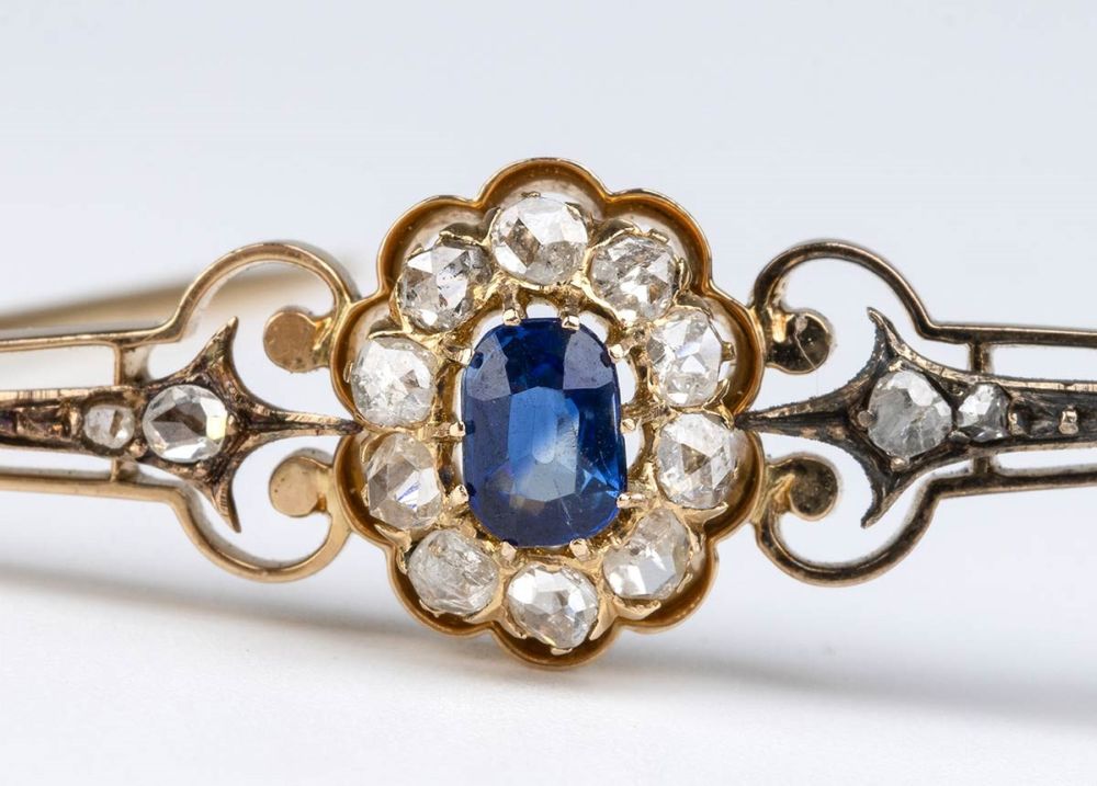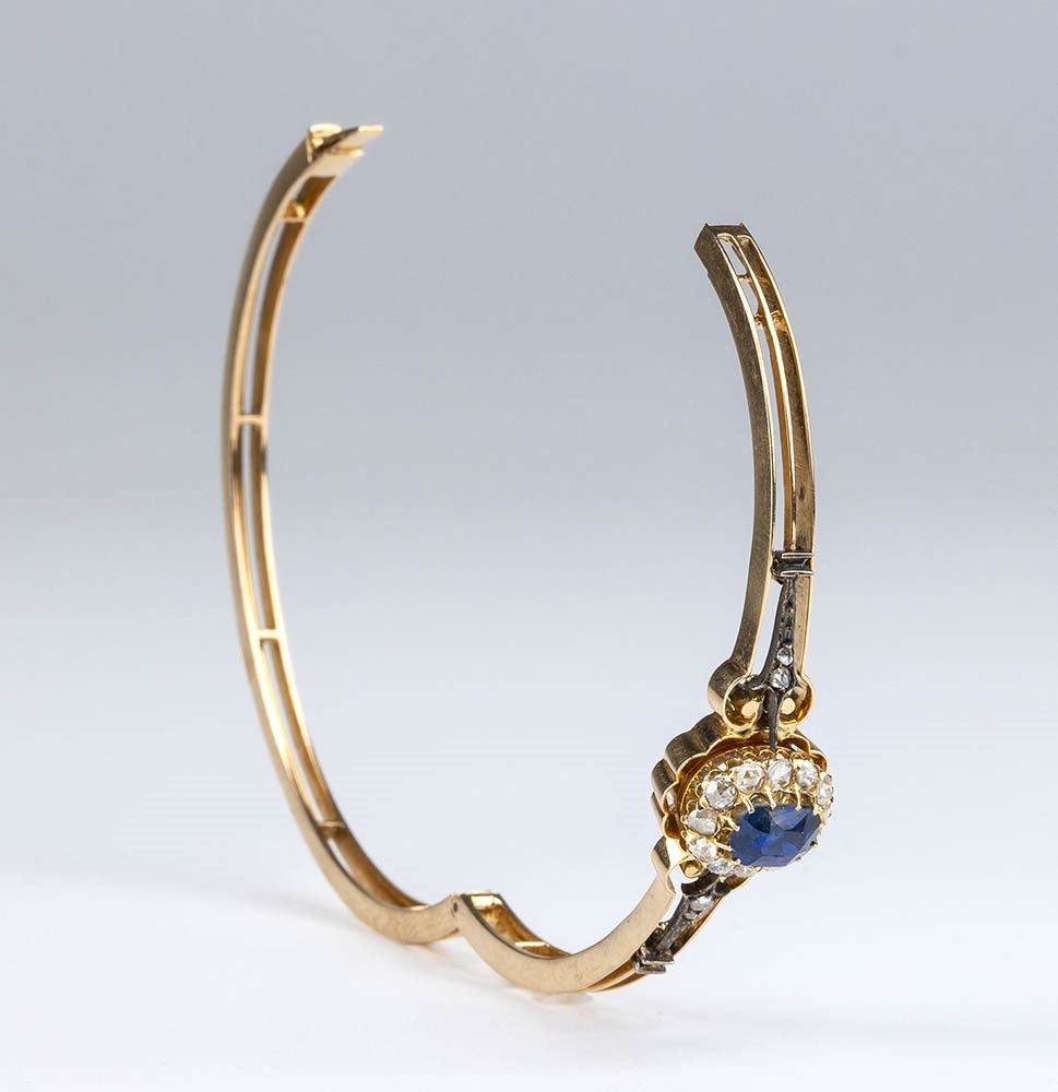 Bracciale e spilla in oro ed argento con zaffiri e diamanti - fine XIX secolo
