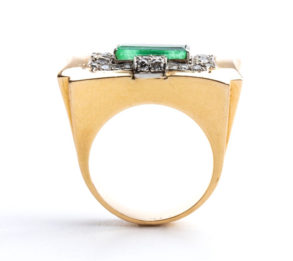 Anello in oro giallo con smeraldo e diamanti - anni '40