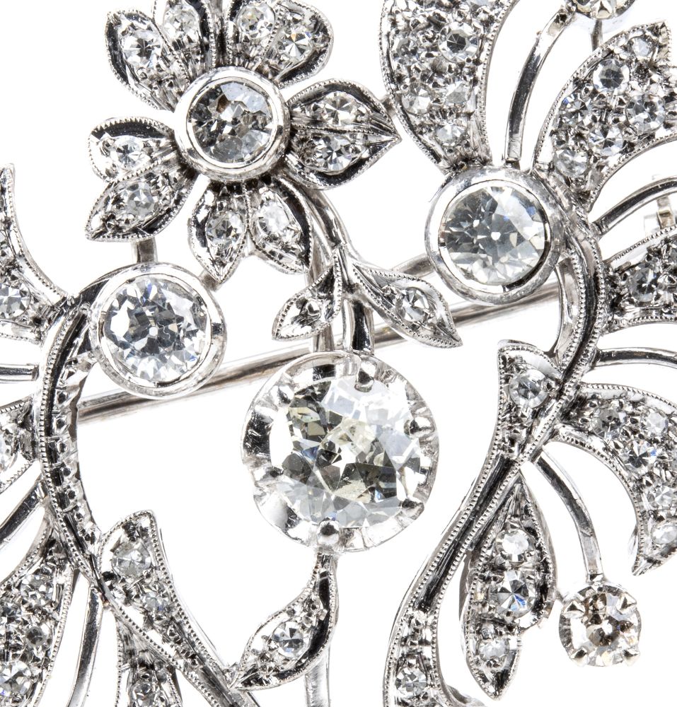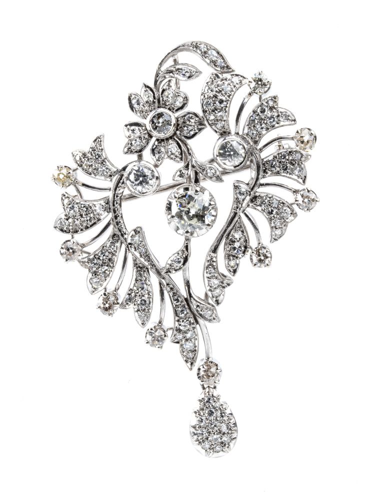 con motivo di steli, nastri, piccole foglie e fiori in diamanti.