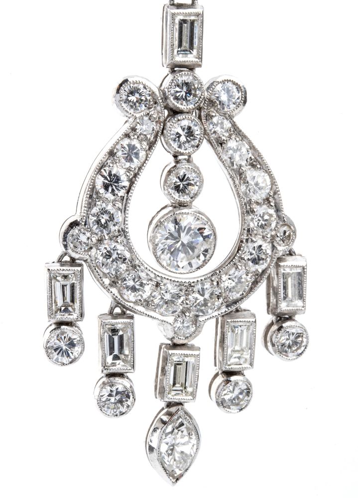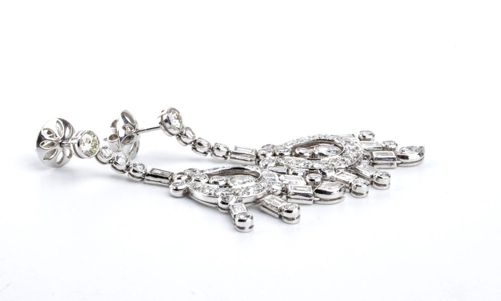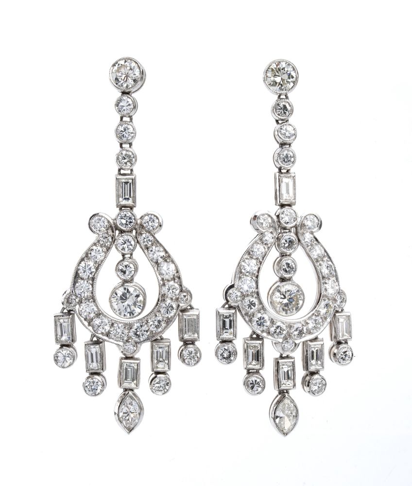 motivo chandelier in platino e diamanti di varie forme.
