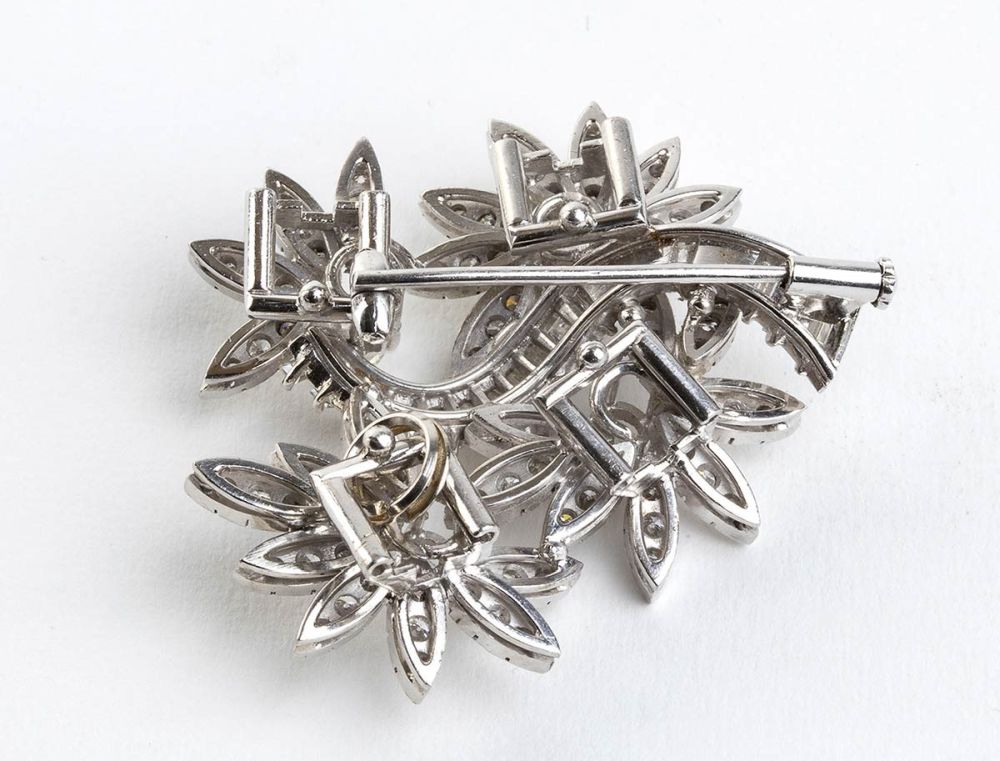 Spilla - pendente floreale in platino e diamanti - anni '50