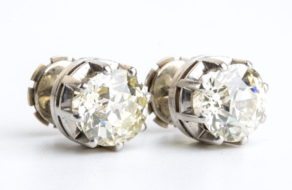 N. 02 diamanti di forma rotonda, taglio vecchio europeo, circa 2.25 ct l'uno; K-L, VS-SI.