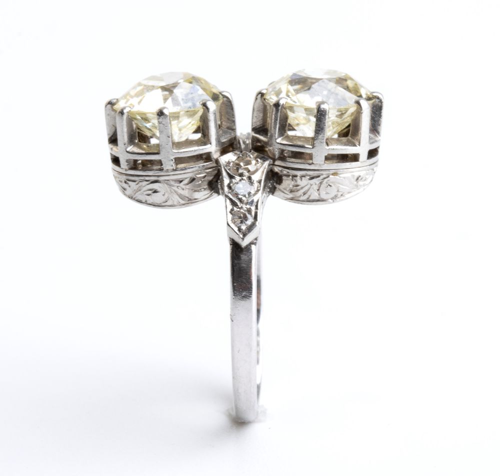 Anello in platino con coppia di diamanti, trasformabile in un paio di orecchini - anni '30