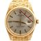 cassa e bracciale in oro 18K con decorazione a corteccia, quadrante argentè con indici a bastone e sfere a gladio dorate, datario alle ore 3 e vetro plastica, movimento meccanico a carica automatica calibro 1560 matricola D63407. Matricola orologio 935999 risalente al 1963.