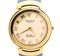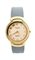 cassa e fibbia deployante in oro giallo 18k, quadrante crema con indici romani e sfere a bastone. Movimento al quarzo. Cinturino commerciale in pelle.
