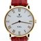 cassa in oro giallo 18K con quadrante bianco, indici romani e sfere dorate. Movimento meccanico a carica manuale calibro 1600. Cinturino in pelle con fibbia dorata commerciale. Numero di referenza 5112. Matricola N31938.