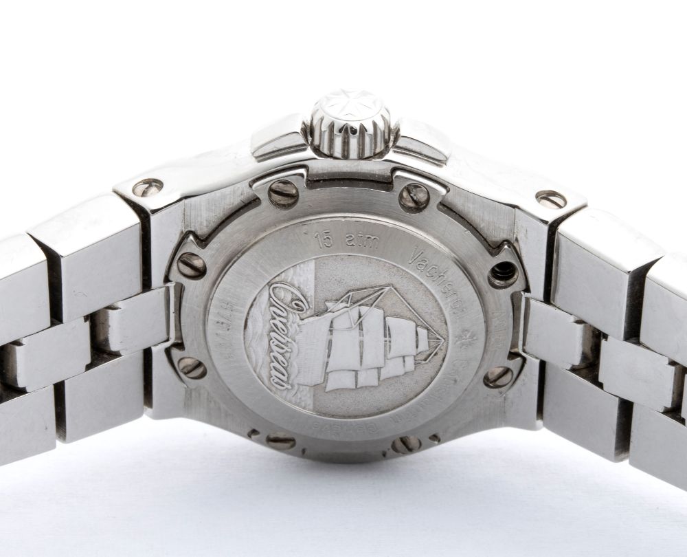 cassa in acciaio, quadrante argentato con indici a bastone e sfere argentate firmato Vacheron Constantin, vetro zaffiro. Movimento meccanico a carica automatica. Il fondello presenta: Acier - 15atm - Vacheron Constantin Geneve - 676798 - Veliero e Overseas; bracciale in acciaio con chiusura deployante.