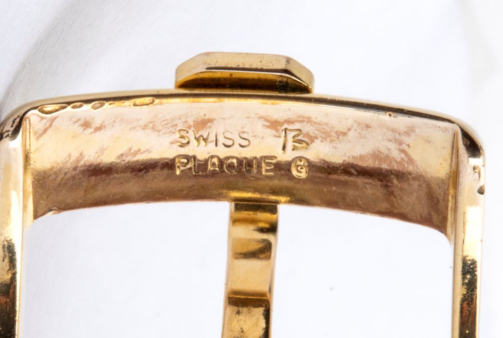 Cassa in oro giallo 18K, quadrante bianco con indici romani e sfere dorate, movimento meccanico a carica manuale calibro 895 nr. seriale 487043 16/3154.