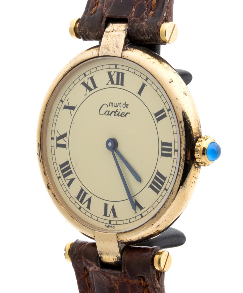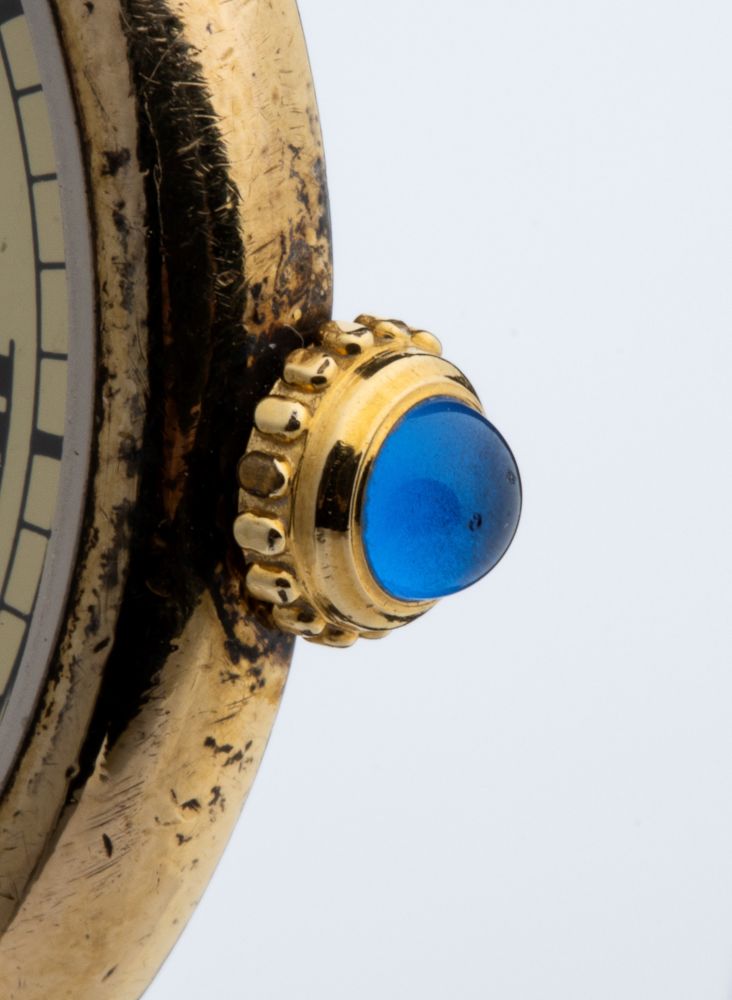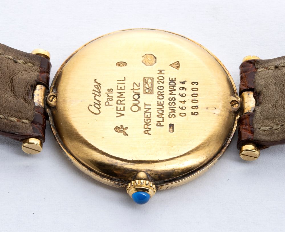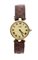 cassa in argento dorato vermeille, quadrante champagne con indici romani, sfera gladio nere. Movimento al quarzo. Riferimenti fondello: 064694 590003. Fibbia in metallo dorata. Cinturino in pelle.