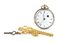 cassa in metallo dorato, quadrante in smalto bianco con numeri romani e sfere dorate. Rimessa dell’ora e carica a chiave. Catena in metallo dorato.