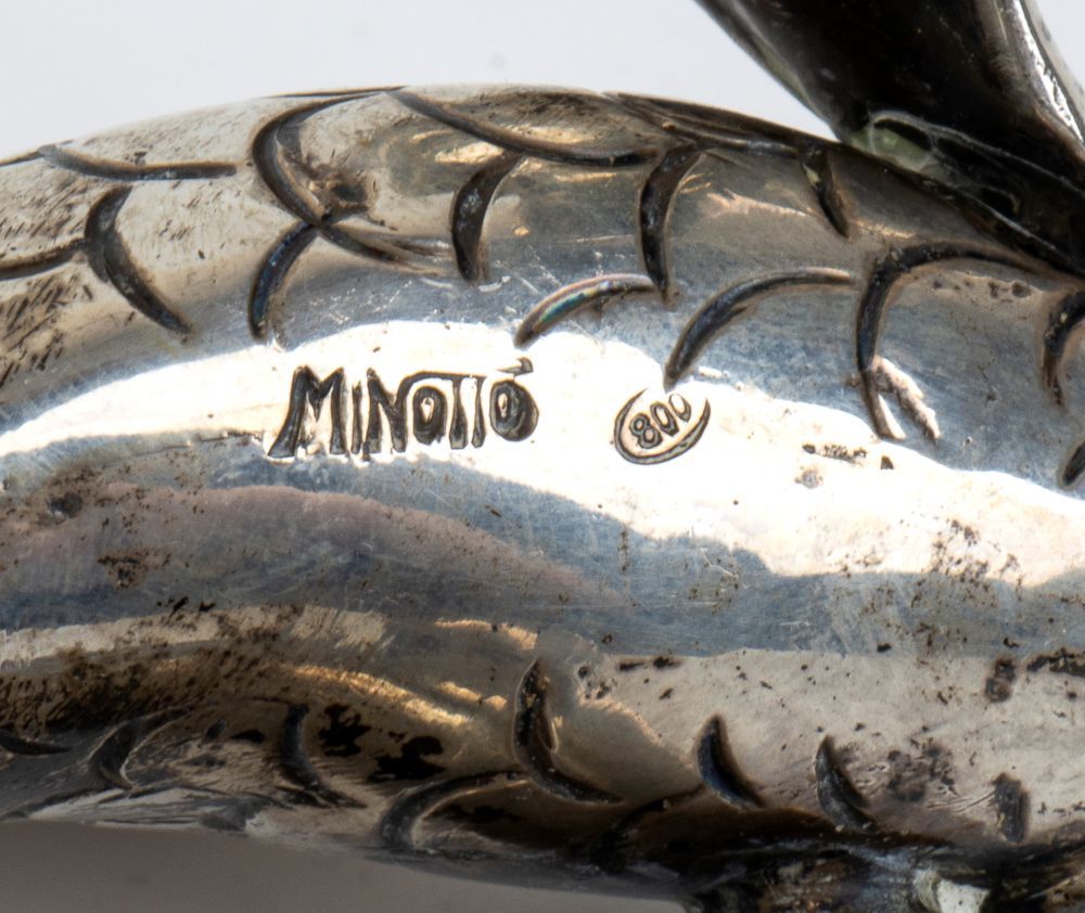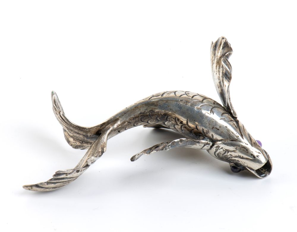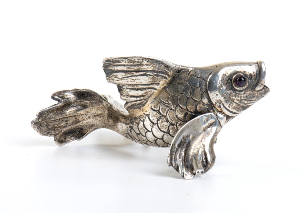 MARCELLO MINOTTO: scultura in argento raffgurante un pesce, prima metà del XX secolo