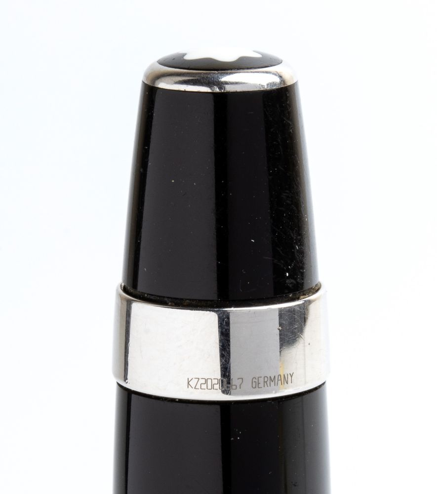 meccanismo a rotazione, corpo in pregiata resina nera, stella bianca Montblanc intarsiata, finiture platinate e clip con onice nero incastonato. Punzonata "Montblanc Boheme, seriale KZ2020667 Germany".