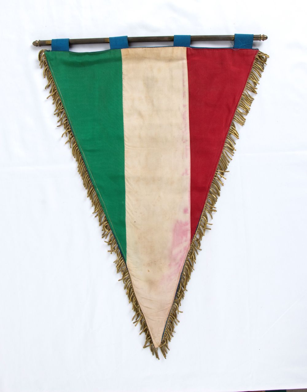 cm.50 Gagliardetto ricamato per Torneo Giovanile del IV Trofeo Nistri del Gruppo Sportivo OMI. Roma 1963. Dedicato al fondatore dell' Ottica Meccanica Italiana, il torneo vedeva anche la partecipazione di squadre come Roma e Lazio. Ricami in canutiglia dorata su sfondo azzurro, al retro il tricolore italiano. In ottime condizioni, completo di asta in metallo
