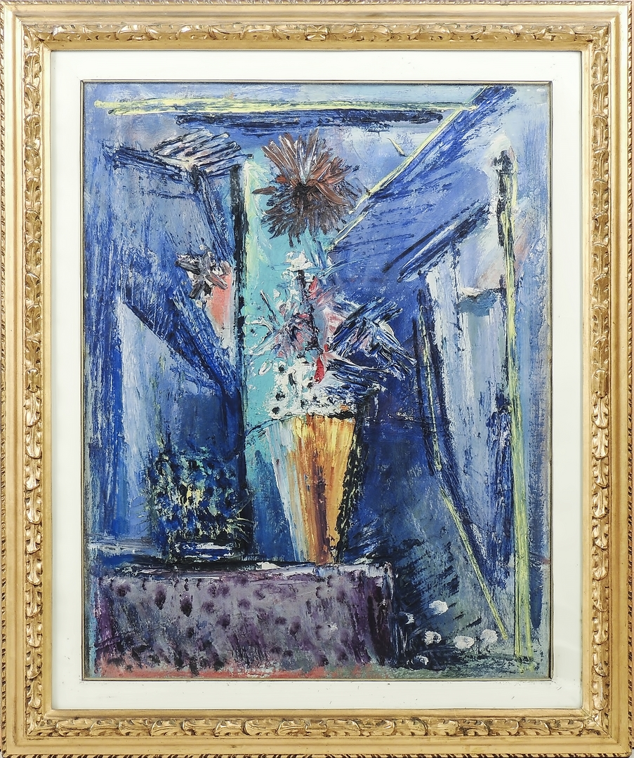 SPARTACO GREGGIO (1893-1979) Composizione con vasi - Composition with Vases olio su tela - oil on canvas, firmato, in cornice cm 70x50