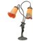 Fusto in bronzo con scultura femminile e campane in pasta di vetro policromo. Epoca Liberty. Cm h 58