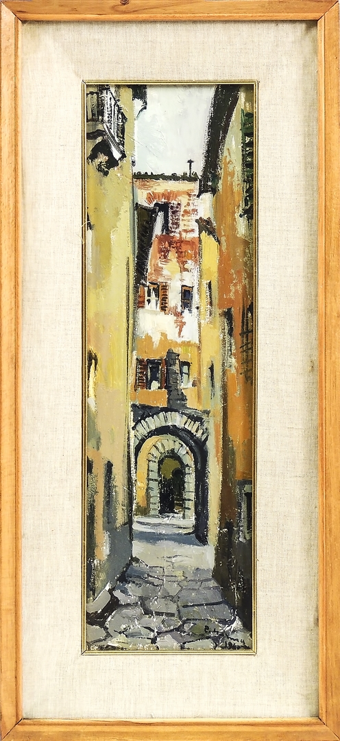 RODOLFO MARMA (1923-1999) Volta della Vecchia - Florence View olio su tavoletta - oil on panel, firmato e datato 1965, al verso datato, firmato e titolato, in cornice cm 51x16
