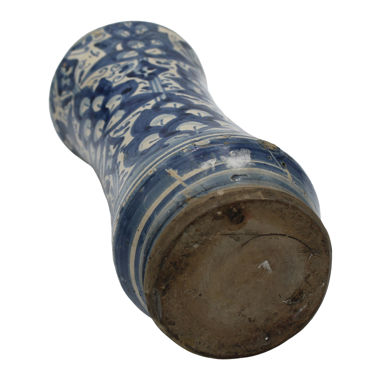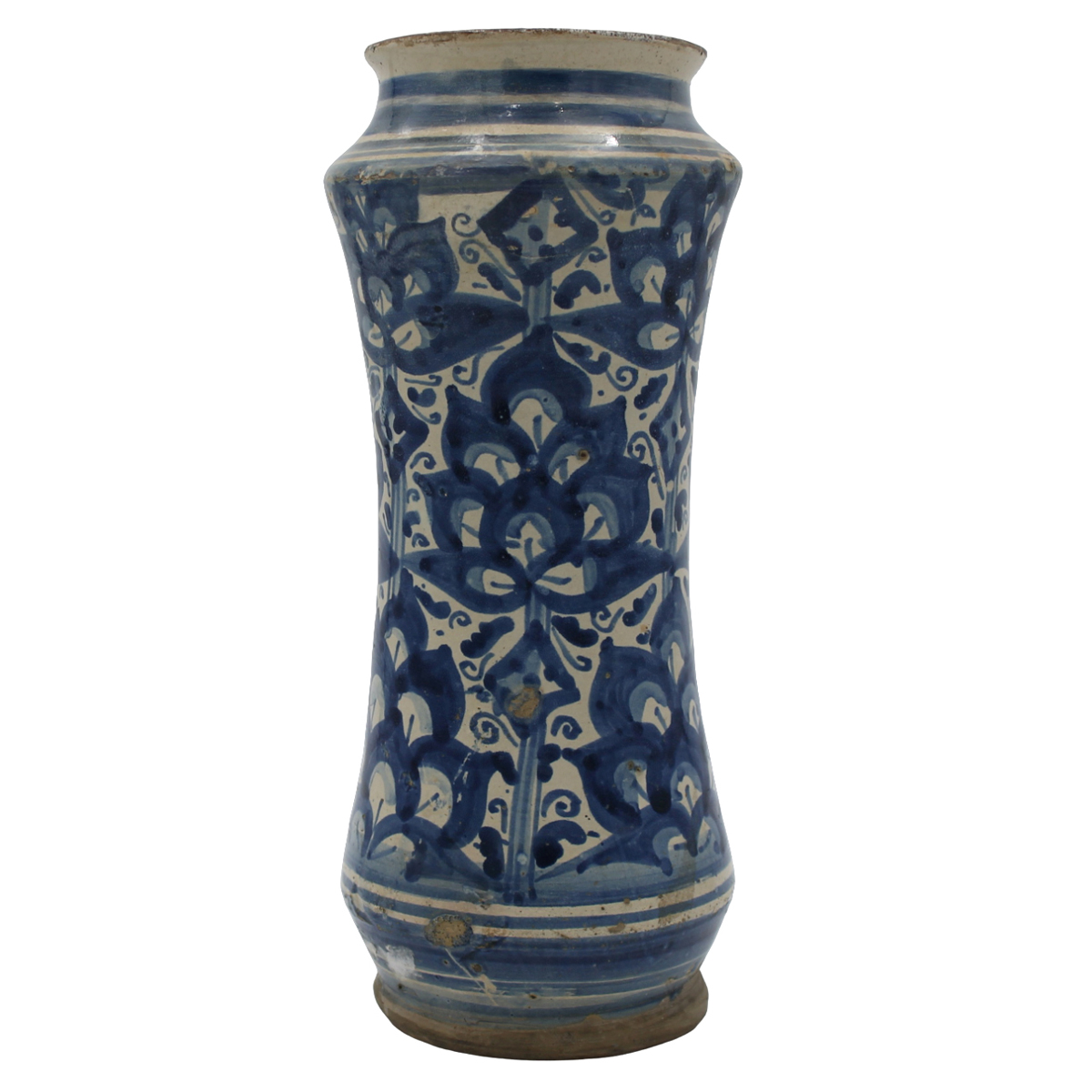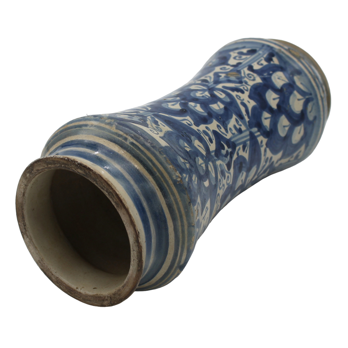 Antica maiolica decorata a tutto tondo a motivi vegetali ed ornamentali in azzurro su fondo bianco (restauri sul collo). Caltagirone. Secolo XVI. Cm h 31