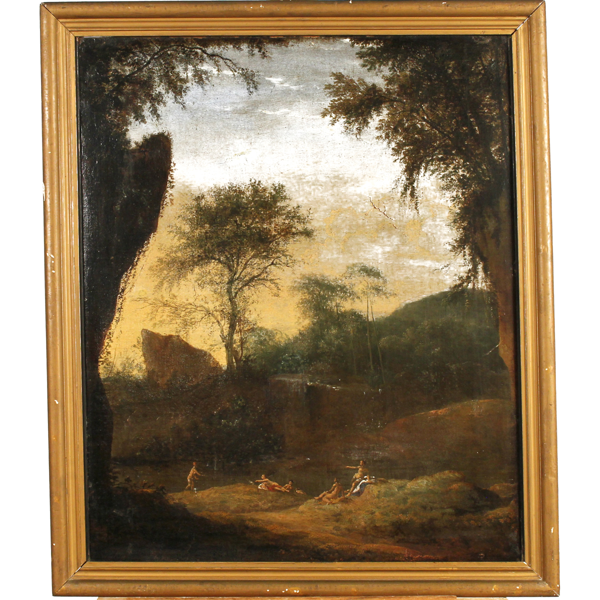 Scuola italiana del secolo XVIII "Donne in riva al lago" - 18th century Italian school "Women by the lake"