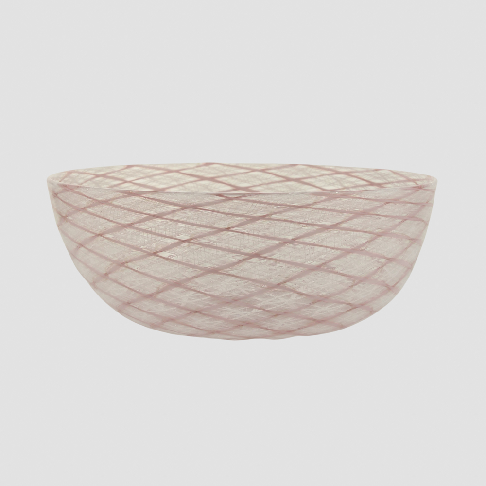 bowl in vetro soffiato zanfirico, etichetta della produzione