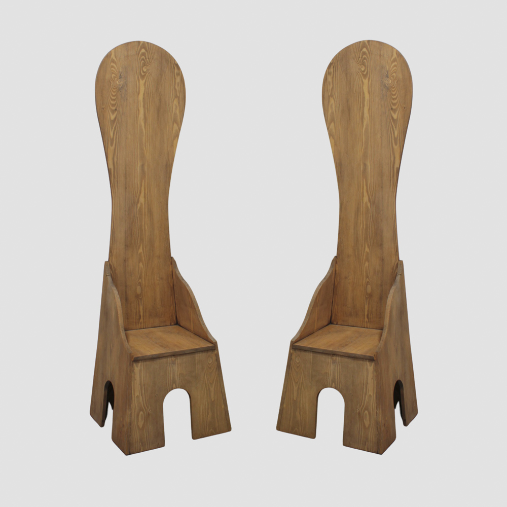coppia di sedie mod. Sedia Alta in legno, firma e marchio della produzione