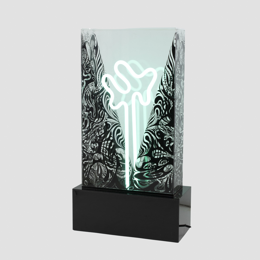 lampada da tavolo mod. Athos Collura, edizione limitata di 50 esemplari, in plexiglass e neon. es. 37/50, marchio della produzione